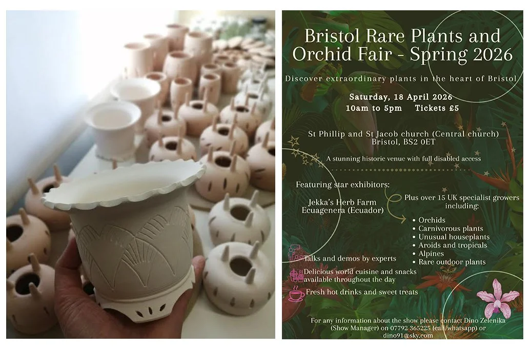 Akiyama Naoko (Studio 2), one half of Gourd and Horse with orchid grower Ben Adams, will be exhibiting at the Bristol Rare Plant and Orchid Fair on Saturday 18th April. This is a great chance to see Aki’s signature three-legged plant pots, perfectly designed to showcase a beautiful selection of Japanese orchids - including the elegant Vanda falcata (“Fuukiran / 富貴蘭 ”) and the graceful Dendrobium moniliforme (“Chouseiran / 長生蘭 ”). There will be over 15 UK specialist growers at the event and star exhibitors such as Jekka’s Herb Garden - it’s sure to be a fun day. The show takes place on Saturday 18th April, 10am - 5pm at St Phillip and St Jacob Church, Bristol, BS2 0ET (Tickets £5)